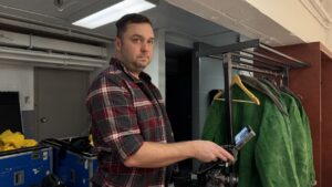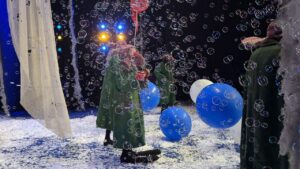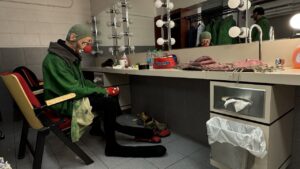 Kolya is preparing for another performance of the Snow Show.
