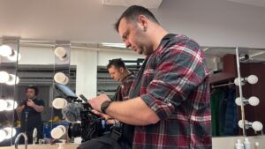 Here he is — still without makeup. Just a man in front of a mirror.