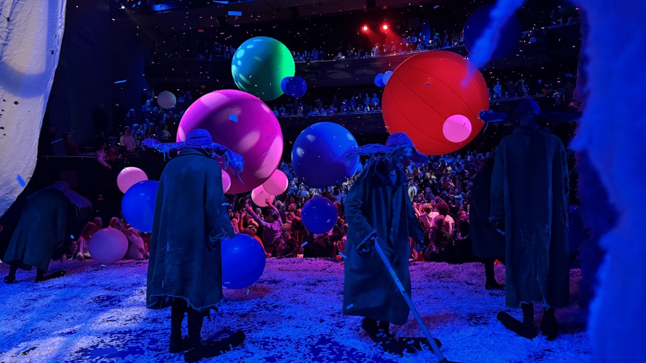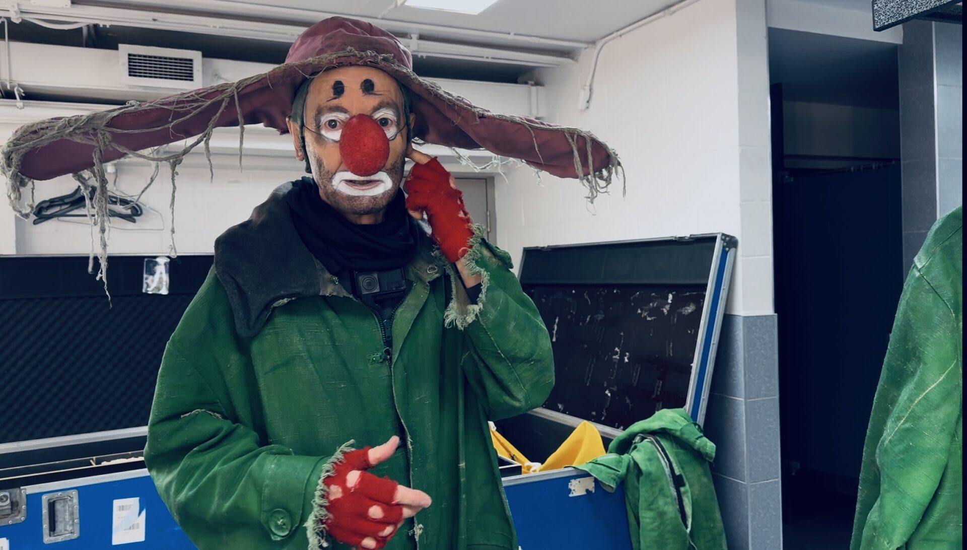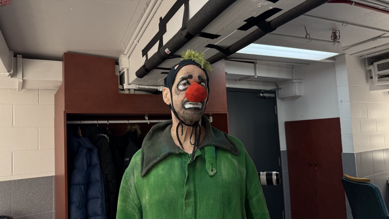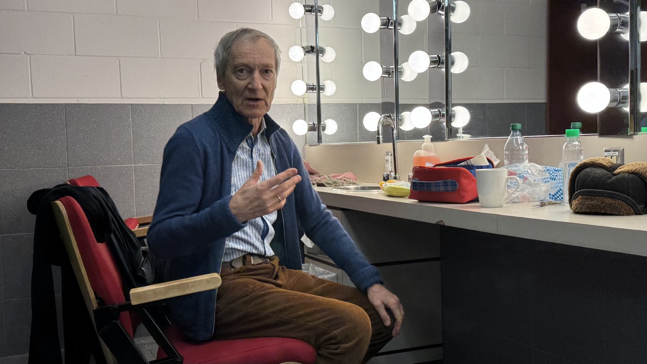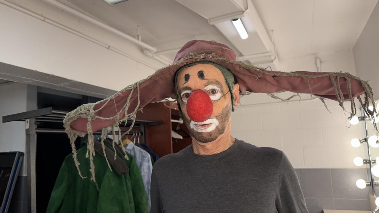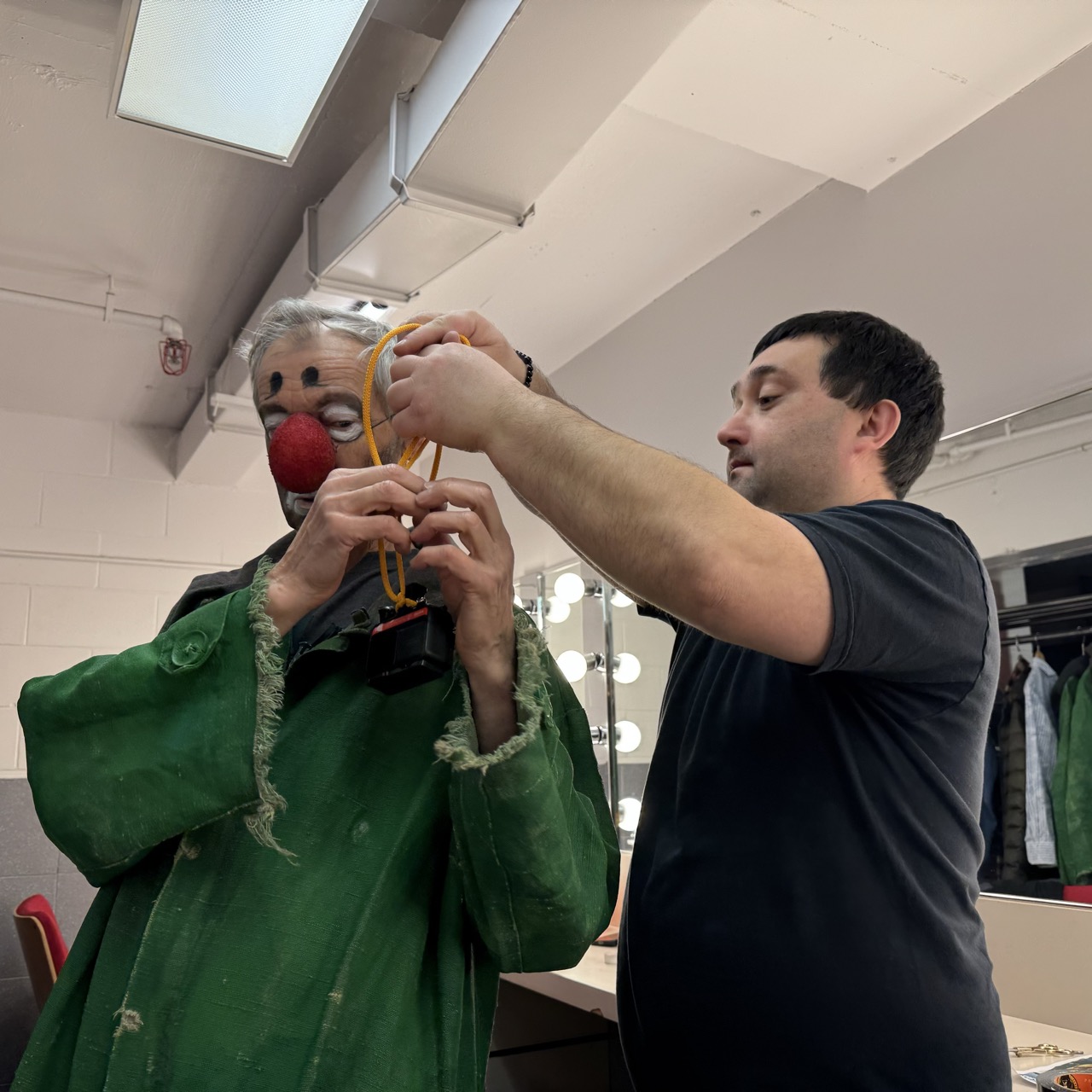 Kolya is preparing for another performance of the Snow Show.