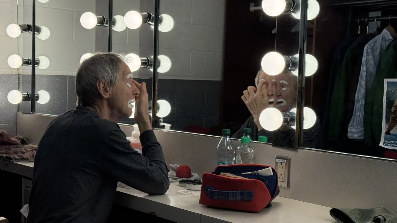 Here he is — still without makeup. Just a man in front of a mirror.