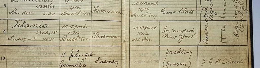 The book is a record of his employment before Titanic, on Titanic, and also the ships he worked on after the disaster.
