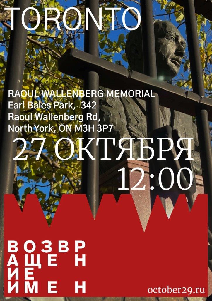 В третий раз наша компания, уже несколько лет работающая над проектом «ГУЛАГ. Свидетели», организует акцию «Возвращение имён» в Торонто у памятника Раулю Валленбергу.