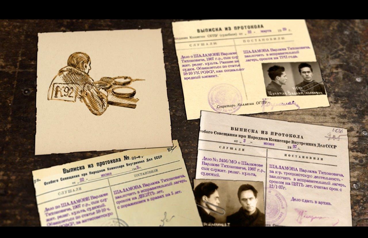 ВАРЛАМ ШАЛАМОВ: Найстрашнішим, напевно, був холод. Адже актували тільки мороз вище 55 градусів. Ловився цей 56 градус Цельсія, який визначався по плювку, що застигав на льоту, по шуму морозу, бо мороз має мову, яка називається по-якутськи «шепіт зірок». Цей шепіт зірок був нами засвоєний швидко і жорстоко. Перші ж обмороження: пальці, руки, ніс, вуха, обличчя, все, що схопить найменший рух повітря. У горах Колими немає місця, де б не дули вітри.
