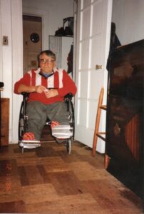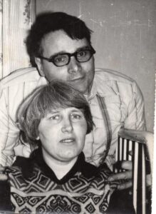 Yura: І після цього отримати роботу було неможливо. Все було закрито. Я пам’ятаю крісла, на яких вони пересувалися — це, порівняно з німецькими, з тим, що існувало в світі, було в 10 разів важче. А протези, на яких тато ходив, важили 16 кілограмів. Тато був паралізований від грудей і нижче. Коли ти говориш про те, що означало жити серед інвалідів в Радянському Союзі… Мої батьки та їхнє оточення були дуже цікавими, цілеспрямованими людьми, незважаючи на їх фізичний стан. Вони були веселими, активними, діючими, але, тим не менше, я, наприклад, досі не можу дивитися на штучні квіти, бо це була одна з тих робіт, які давали інвалідам — це був рабський труд. Потрібно було робити величезну кількість квітів, щоб заробити мінімальні гроші. Або друга робота — накатка, коли сидиш і просто наклеюєш ярлики. Треба було зробити тисячі наклеєк, щоб заробити копійки. Це стосувалося всього. Пенсія інваліда першої групи складала 24 рублі. Інваліди, які жили в будинках-інтернатах, не мали права укладати шлюб самостійно. Це можна було зробити лише з дозволу органів соціального забезпечення.
