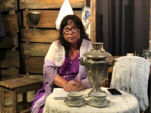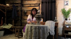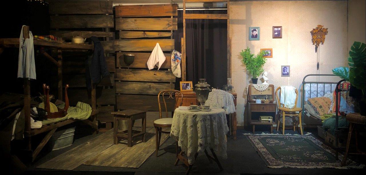 Разом із Dmitry Khilchenko та Іваном Кибою розмірковуємо над дизайном сцени. Нам потрібно поєднати два простори — Москва, школа, дім і Колима. Вирішили розділити сцену навпіл. Праворуч— життя до арешту. Ліворуч— табір. У центрі— стіл із мереживною скатертиною та абажуром— простір для актриси, місце спогадів і внутрішнього діалогу.
