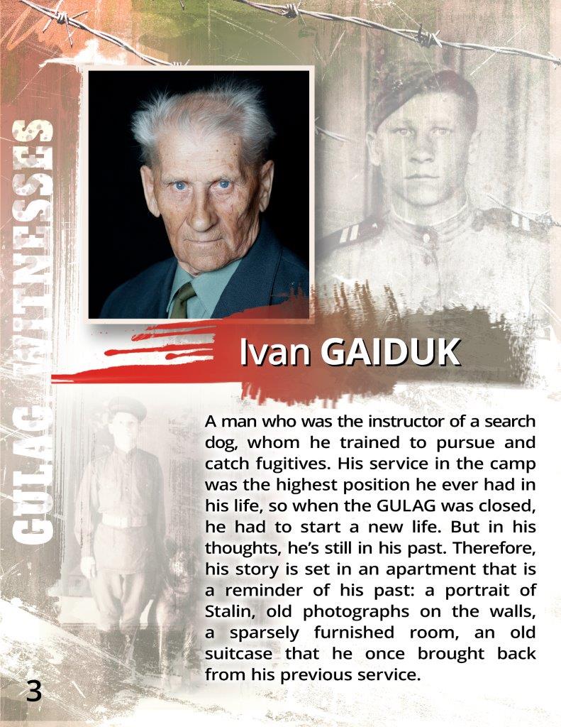 Віктор Красін, Іван Гайдук, Ірина Каліна, Іраїда Борисевич – їхні голоси мають бути почуті. Кожен спогад, кожна деталь – ще одна нитка у складній історії ГУЛАГу. Ми заглиблюємось у їхнє життя, вивчаємо біографії, відновлюємо події, щоб оживити ці історії на екрані.