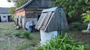 Все забрали, і вони зостались… без нічого. Вийти з села не можна було, моєї свекрухи рідний батько пішов, щоб у Дніпропетровську на роботу десь поступити, і більше його ніхто не бачив. Видно, таких, що виходили, стріляли… Думаю, навряд він сюди, до Дніпра, дійшов. Міліція їздила і стріляла в тих, хто іде з села. Яму копати ніхто сили не мав, всі пухлі були. Покладуть на бричку або на тачку, якою гній возили, і ото туди, у той рів…