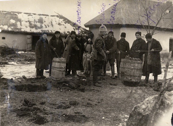 Єдине, що не забрали, так це зерно. Але пригрозили діду при дітях: мамі було тоді 9 років, вона з 24-го, тьоті Каті – десять, вона з 23-го, дяді Феді було 3 роки. «Я кажу тобі, Сильвестре, тут, при твоїх дітях, якщо завтра хоч жменьку зерна з цього візьмеш, то й з хати виводить не будемо, тут же при цих дітях і розстріляю. Поняв?» І пішли. Дід не побоявся й набрав зерна в алюмінієвий казанок, може, на літр чи півтора, і заховав у піч, попелом прикрив. Приходять на другий день, і тітка Марія з ними, вона десь 13-го року, старша за мене, була комсомолкою і в цім отряді продрозверстки. Першою, її ніхто не заставляв, у пічку полізла і, руки б її відсохли, як казала мама, казанок той витягла.