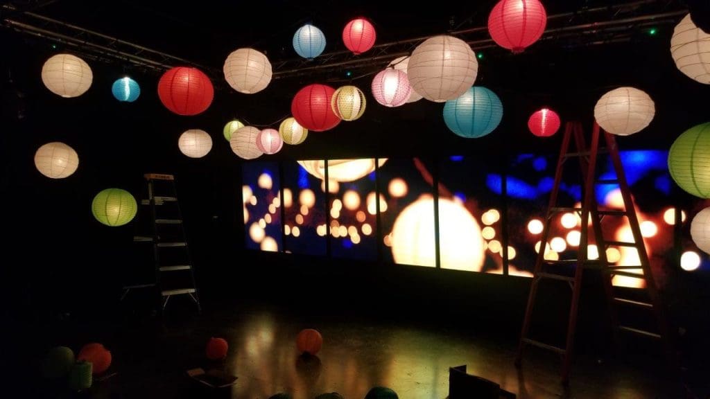 To create a special atmosphere at the studio, we decorated it with several dozen oriental lanterns.
